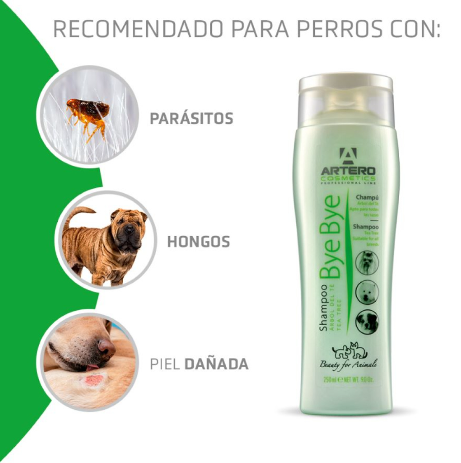 El Champú Artero Bye Bye está destinado, principalmente, a perros con problemas de pulgas y/o parásitos, de cualquier tipo de manto.