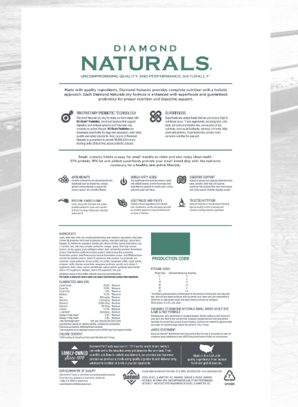 Diamond Naturals Small Breed Lamb and Rice is a dry dog food formulated specifically for small breed adult dogs. Key features include: