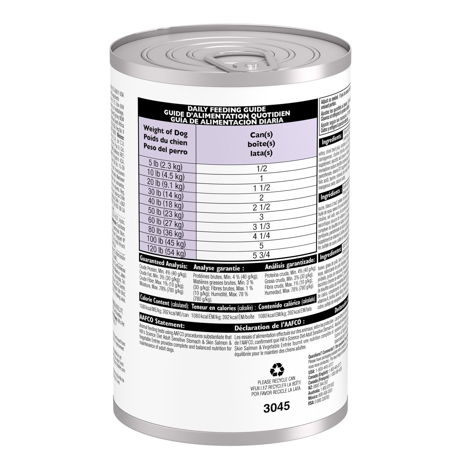 Animal feeding tests using AAFCO procedures substantiate that Hill's Science Diet Adult Sensitive Stomach & Skin Salmon & Vegetable Entrée Dog Food provides complete and balanced nutrition for maintenance of adult dogs.