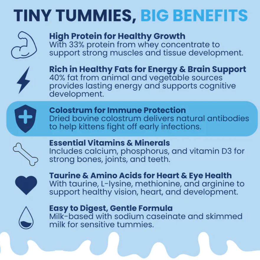 Gentle on Tiny Tummies: Made with easily digestible milk proteins and fats to support developing digestive systems and help reduce the risk of tummy troubles in sensitive kittens.