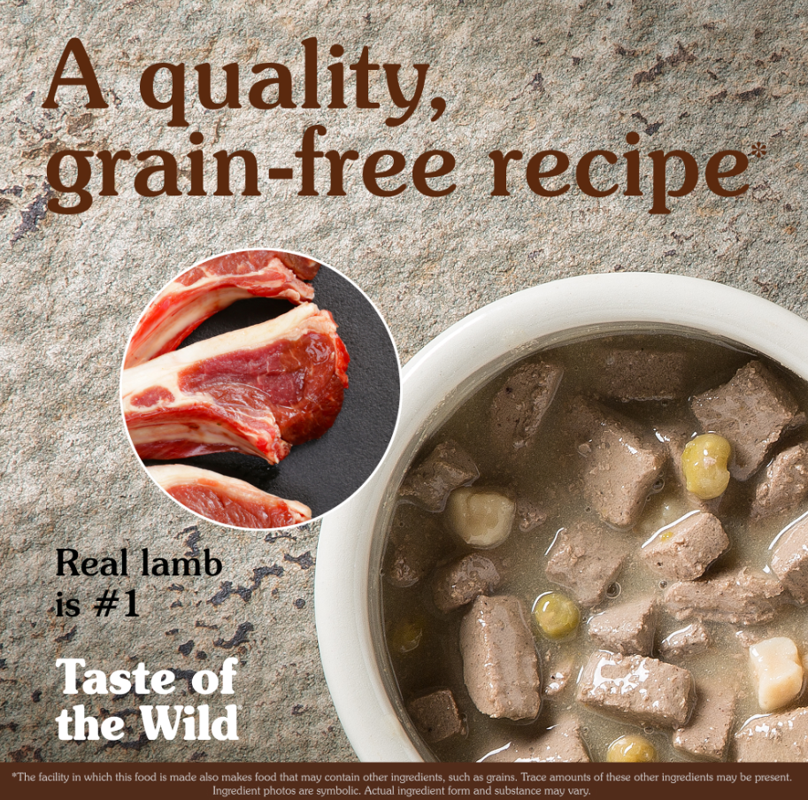 Taste of the Wild Sierra Mountain Canine Recipe With Lamb in Gravy is formulated to meet the nutritional levels established by the AAFCO Dog Food Nutrient Profiles for growth and maintenance except for growth of large size dogs (70 lbs. or more as an adult).