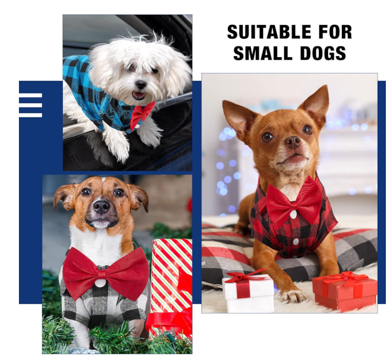 Plaid Puppy Shirts with Bow Tie Dog Buffalo Shirt Pet Christmas Sweatshirt Bow Dog Shirt Outfit for Birthday Party Small Dogs Cats Holiday Photo Wedding Supplies