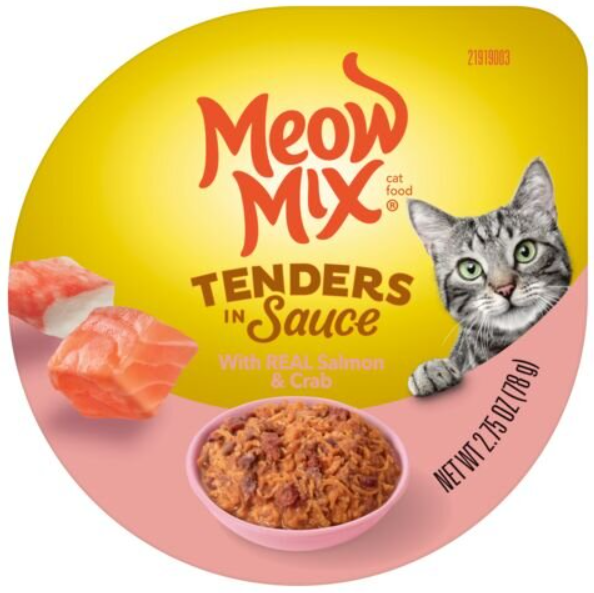 Meow Mix® Tenders in Sauce With Real Salmon & Crab Cat Food is formulated to meet the nutritional levels established by the AFFCO Cat Food nutrient profiles for adult maintenance.